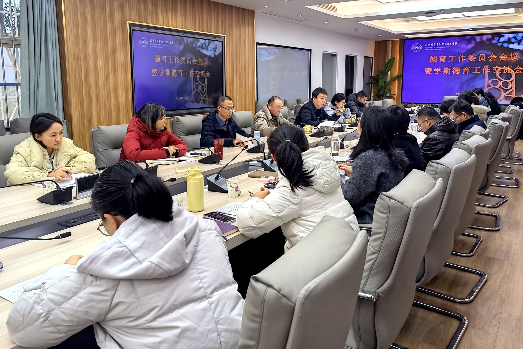 我校召开德育工作委员会暨2025-2026学年第一学期德育工作交流会1月23日下午,我校德育工作委员会暨2025-2026学年第一学期德育工作交流会在莫愁路校区召开。副校长姜峰出席会议并讲话,德工委秘书长许鸣峰、学生工作部主任王祥、副主任王心同,校团委书记潘...