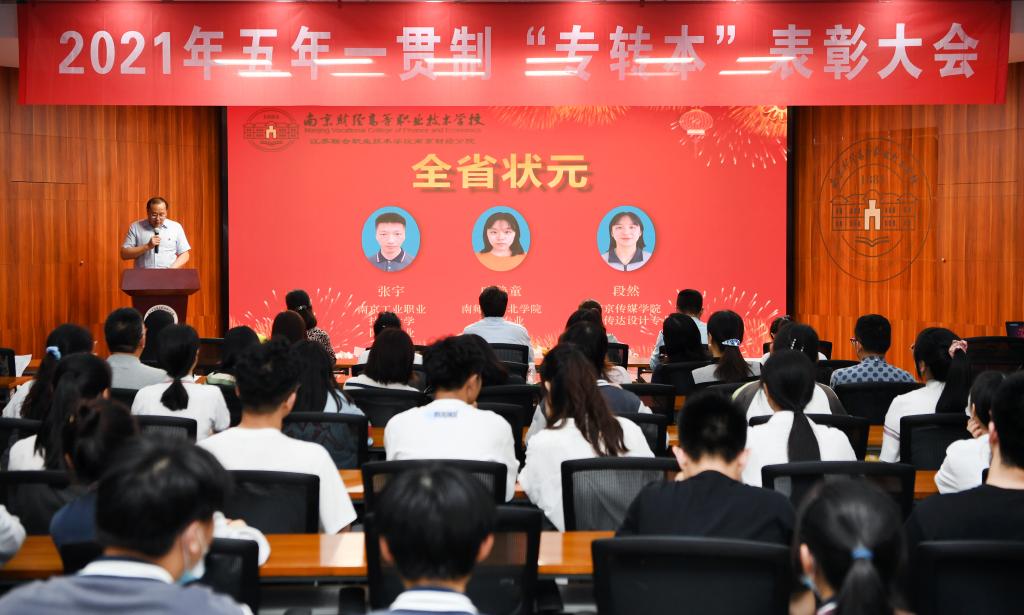 2021年五年一贯制“专转本”表彰大会成功召开 为表彰在“专转本”考试中辛勤付出的任课教师们,激励17级学生刻苦钻研、勤奋努力,6月18日,我校2021年五年一贯制“专转本”表彰大会于夫子庙校区报告厅举行。