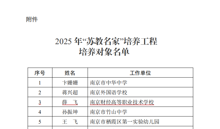 我校薛飞同志成功入选2025年“苏教名家”培养工程