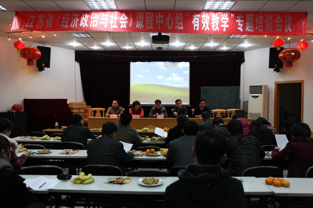 11月27—28两天,我校承办了江苏省《经济政治与社会》课程中心组的专题培训活动,此次培训活动是主题是如何实现“有效教学”。