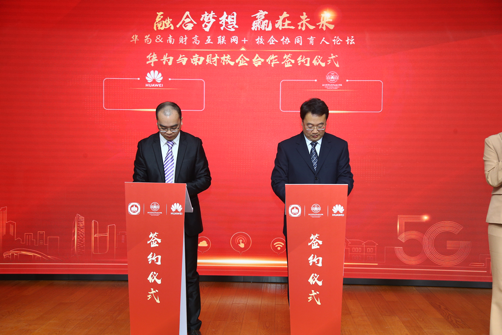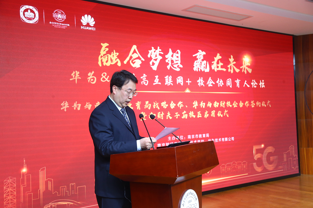 12月28日上午,华为&南财高互联网+校企协同育人论坛在我校夫子庙校区隆重举行。南京市教育局与华为技术有限公司战略合作签约仪式、华为与南财高云计算技术产教融合实训平台签约仪式以及我校夫子庙校区启用仪式为此次论坛增添了浓墨重彩的一笔。