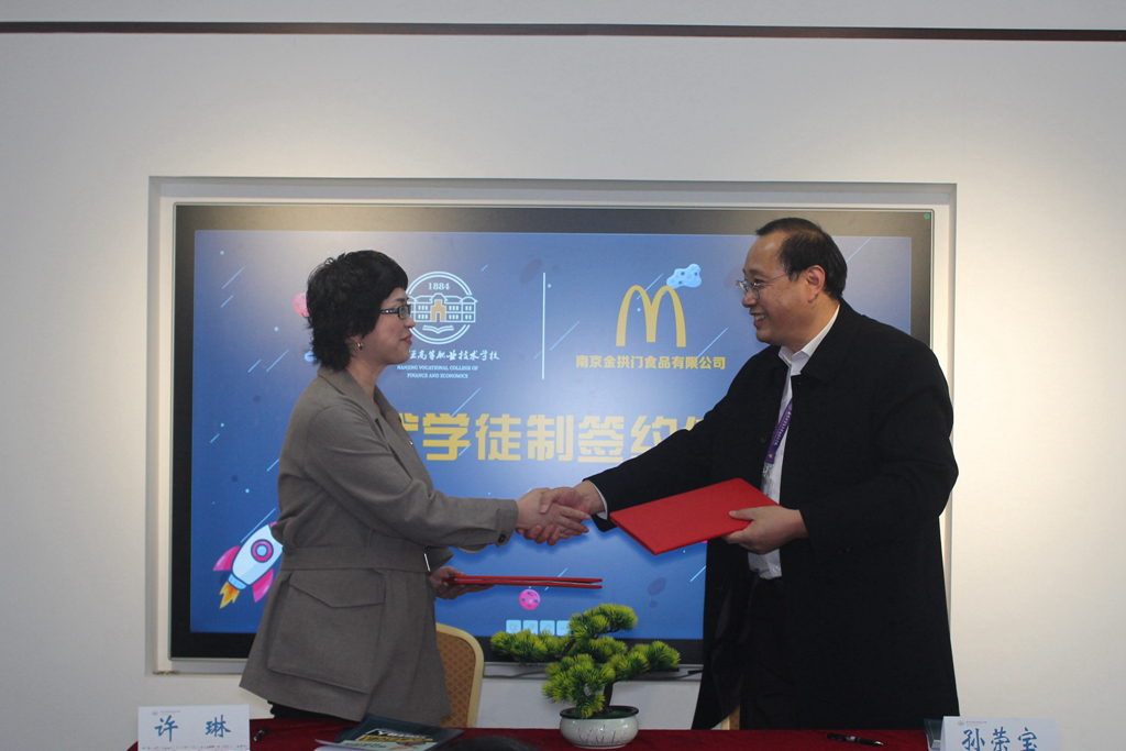签约仪式在热烈的氛围中进行。麦当劳企业代表许琳经理在发言中表示,企业将以现代学徒制为模式,与南京财经高职校一起探讨职业学校学生的专业培养、职业生涯教育和发展的新思路、新实践,做好共同迎接未来的准备。学校孙荣宝副校长发言表示,旅游管理专业将坚持深化产教融合,完善校企合作机制,期待与南京金拱门食品有限公司的现代学徒制人才培养模式能够圆满成功,培养出符合市场需求的复合型技能人才。