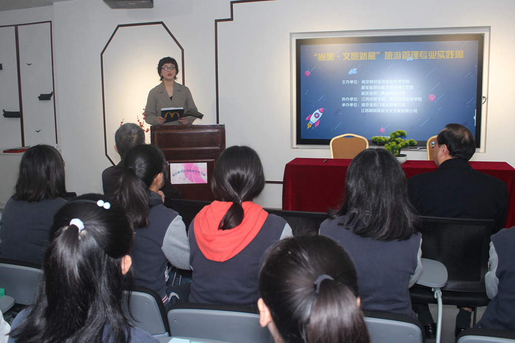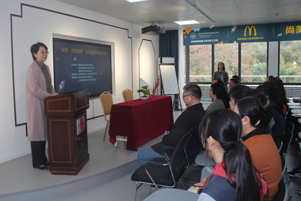 11月16日上午,我校与南京金拱门食品有限公司校企合作签约仪式暨“尚美·文旅新星”旅游管理专业实践周启动仪式在学校莫愁路校区“尚美空间”实训基地举行。江苏麦当劳人力资源部高级经理许琳、江苏麦当劳人力资源部招募顾问裴澄宇、夏军技能大师工作室成员和相关企业代表参加仪式,学校孙荣宝副校长、现代服务系杨宇净主任、盛莲莲副主任、旅游教研室金捷主任出席此次仪式。