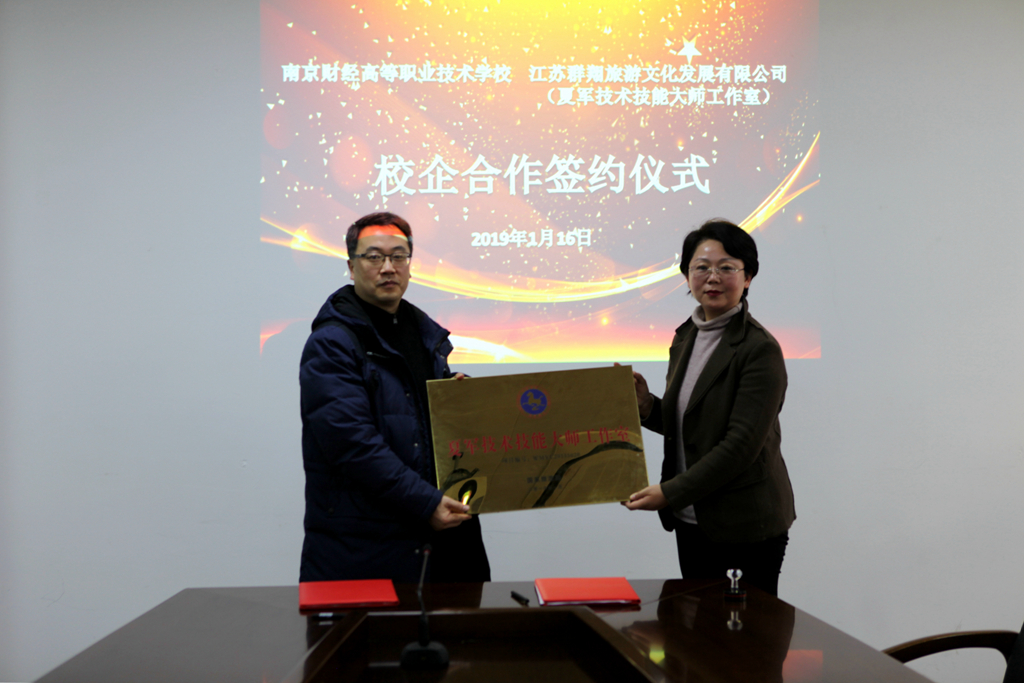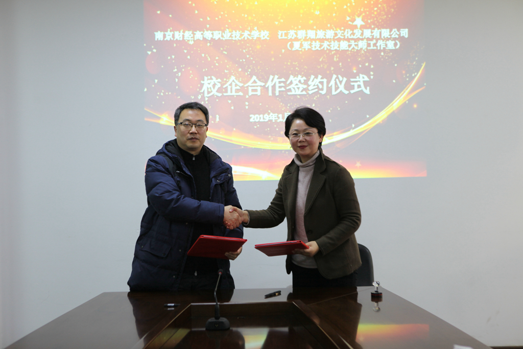 1月16日上午,我校现代服务系旅游管理专业与群翔文化旅游公司(夏军技术技能工作室)(以下简称夏军工作室)举行了校企合作签约仪式。学校姚峰校长、陈浩副校长、刘辉副校长、旅游教研室金捷主任及相关专业教师和夏军工作室夏军总经理、余婷女士等出席了本次会议。会议由现代服务系杨宇净主任主持。