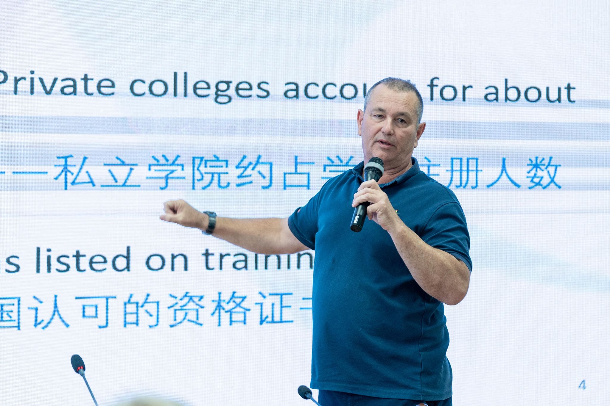 Ian Edwards先生作《澳大利亚的职业教育与培训(VET)体系及其教学理念》分享,解读澳大利亚VET体系理念,探讨教学方法与跨文化合作策略。