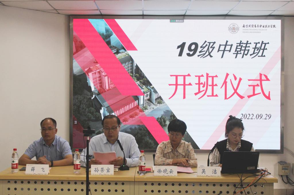 9月29日下午,我校举行了2019级中韩合作班开班仪式。学校孙荣宝副校长、信息艺术系主任薛飞、金融系主任徐晓云以及2018、2019级中韩合作班学生及家长参加了开班仪式。同时,现场连线了韩国崇实大学国际处处长韩载泌及国际处各负责人参加了仪式。仪式由吴洁老师主持。