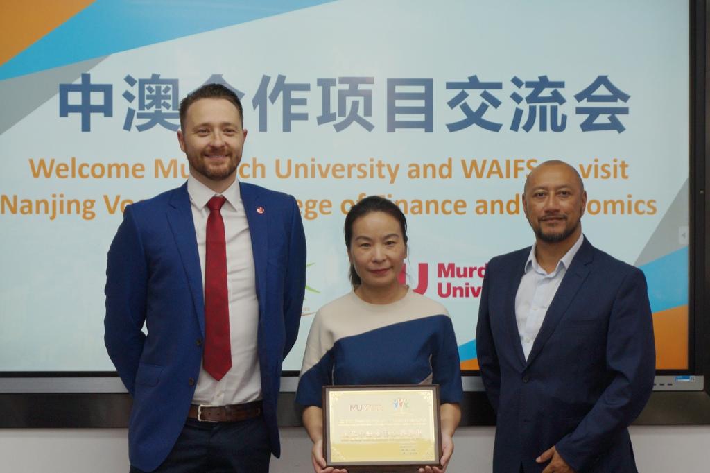 5月19日上午,中澳合作项目交流会暨莫道克大学预录取通知书及奖学金颁发仪式在莫愁路校区举行。双方领导、老师们亲切会谈、深入交流,共同推进项目的进一步完善、优化、升级。莫道克大学国际处主任尤安和WAIFS学院院长肖恩均表示,同学们的状态让他们非常高兴,南京财经高职校的学子在莫道克大学的国际学生中非常优秀,这也使得这个中澳合作项目在整个西澳成为非常知名的优秀教育项目。我校党委书记崔琪对澳方为期一周的来访表示热烈欢迎,感谢两个学校对这个项目的重视。崔书记希望未来中澳双方可以在三个方面不断完善:夯实国际化办学基础,寻求更多方式进行教师培训,提升教学能力;将中澳合作办学的优质教育资源辐射更多非国际班学生;在促进学校国际化教育特色方面提供澳方经验,形成合作共赢模式。