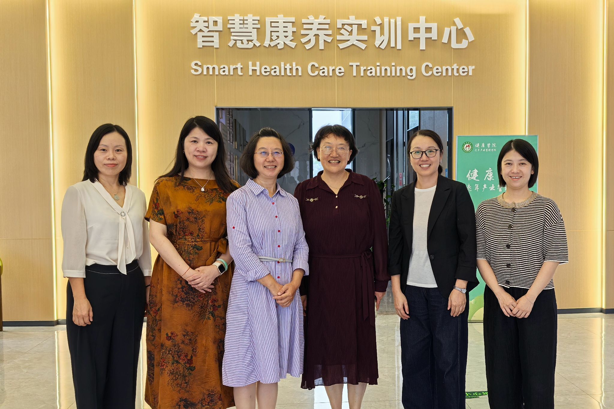 当日下午,调研组前往江苏经贸职业技术学院。健康学院院长杨爱萍系统介绍了健康类专业的建设情况,特别是在智慧健康养老服务与管理专业的人才培养模式与课程体系建设方面的经验。双方就专业合作的可能性进行了探讨。