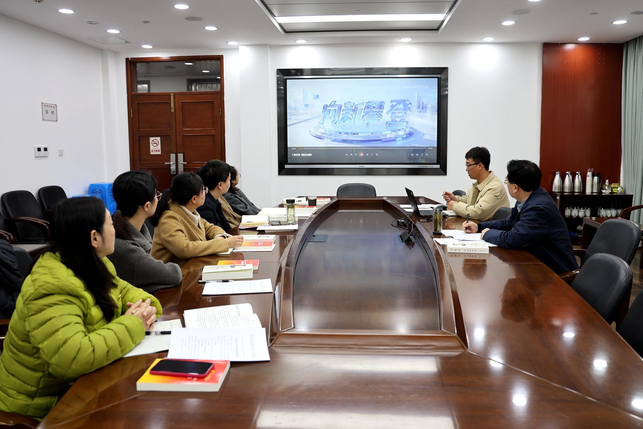 会议伊始,全体成员观看了省委组织部推出党的创新理论专题学习教育作品《向新攀登》,专题片以纪实手法展现了江苏省在发展新质生产力过程中,不断探索教育、科技、人才、产业一体推进的生动实践,让全体人员沉浸式感受着新时代创新者们“大胆革新,勇攀高峰”的创新精神。身为职业学校教育工作者、党建工作者,专题片中“产教融合、党建融合”的模式,为实现校企社协同育人提供了新思路、新路径,大家纷纷表示要以此次学习为起点,深入企业、社会开展学习调研,将创新精神转化为攻坚克难、推动发展的实际行动。
