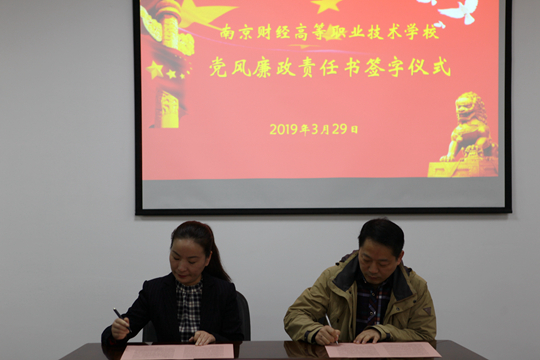 为进一步加强党风廉政建设,切实履行全面从严治党主体责任和监督责任;扎实开展“平安校园”建设工作,确保学校的安全与稳定,切实保障全校师生的生命安全和财产安全,3月29日上午,我校在莫愁路校区召开了2019年度党风廉政建设责任书签字仪式以及综合治理、平安校园建设工作会议暨责任书签字仪式。学校全体中层干部参加会议。会议由姚峰校长主持。