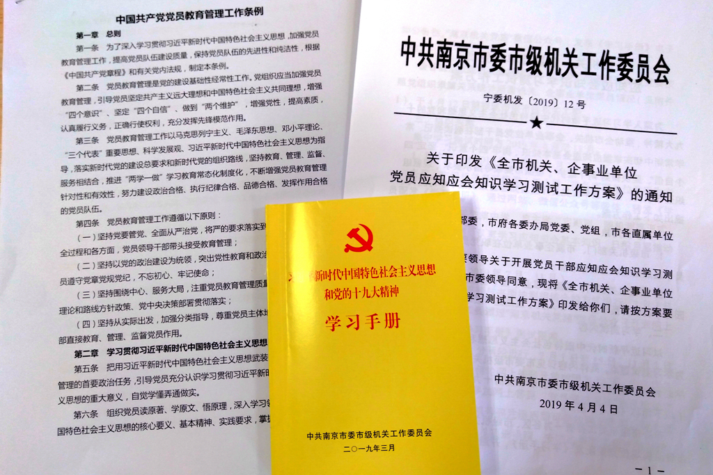 会议最后还下发了关于《全市机关、企事业单位党员应知应会知识学习测试工作方案》的纸质通知。通知要求,全市机关、企事业单位党员开展应知应会知识集中学习测试,通过网站、微信公众号等载体在4月至11月期间采取集中学、自主学、定期测、随机测等形式,学习应知应会基本知识。支部书记并且要求支部全体成员高度重视,在工作中、生活中能够率先垂范、主动学习、增强自律意识,并踊跃参加网上答题活动。