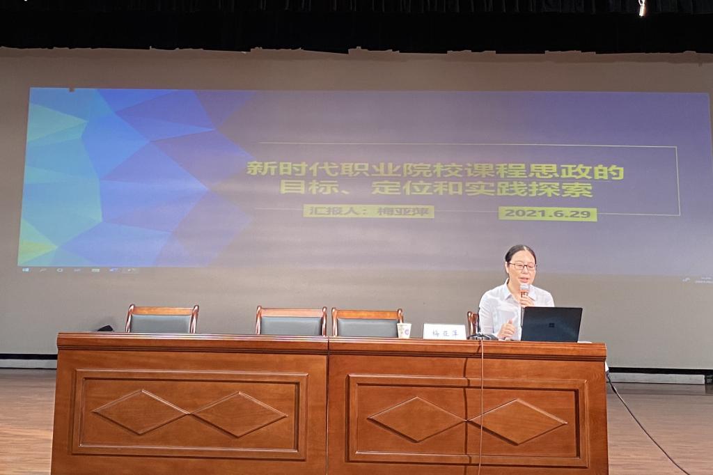 为提升教师课程思政意识,理清课程思政理念,整体推进课程思政,6月29日,我校面向全体教师开设课程思政大讲堂,并邀请全国课程思政领域专家——无锡城市职业技术学院副院长梅亚萍作专题讲座。学校崔琪书记、孙荣宝副校长、朱辉副书记、杨宇净副校长参会,马原主任主持。