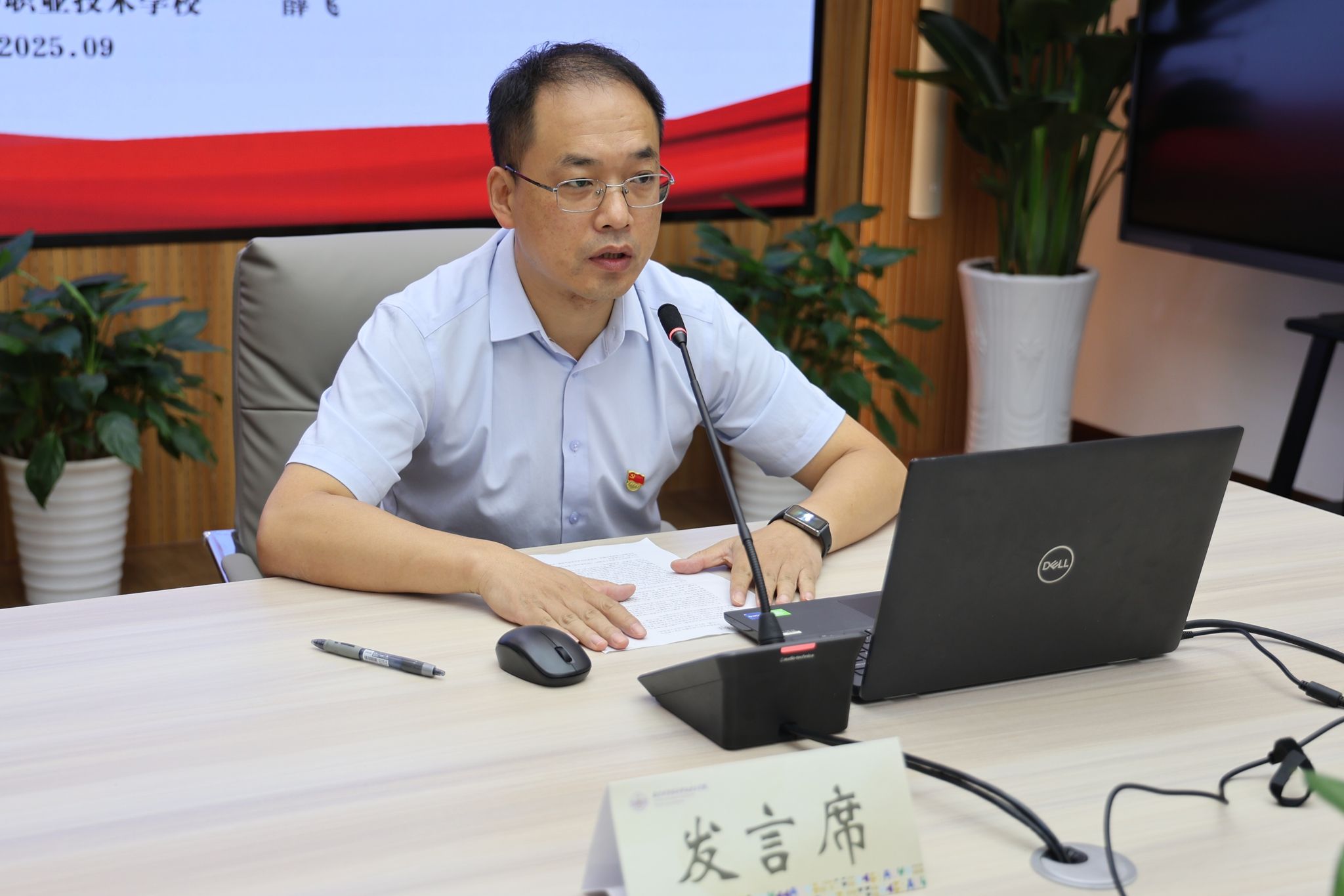 副校长薛飞在发言中表示,习近平文化思想是职业教育育人素材与标准,为“培养什么人、怎样培养人、为谁培养人”提供了根本遵循。学校将通过加强课程融合、丰富实践活动、强化师资队伍、深化校企合作四个方面,推动文化育人落地生根,助力学生“学技术、懂文化、立信念”,为文化强国贡献职教力量。