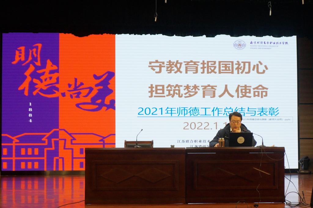 1月17日下午,我校在莫愁路校区召开学期工作结束大会,全体教职工参加会议。学校姚峰校长主持会议并讲话,对2021年各项工作进行了总结回顾,对学校“十四五”规划做了解读,对假期安全事项进行了提醒,并对全体教职工作师德师风专题教育。