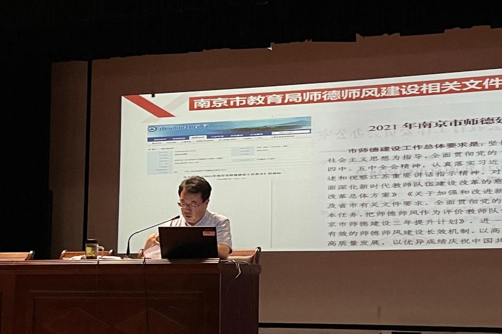 在师德师风专题课上,姚校长向全体教职工解读了国家及省市师德师风建设相关文件,分享了“全国优秀教师”王红旭、“时代楷模”曲建武、“七一勋章”获得者张桂梅等优秀案例,鼓励大家学习优秀榜样,同时也结合教育部公布的一些违反“高校教师职业行为十项准则”典型案例进行了警示教育。最后,姚校长以近期习近平总书记关于师德师风的重要论述结尾,要求大家要“继承发扬老一辈教育工作者‘捧着一颗心来,不带半根草去’的精神,以赤诚之心、奉献之心、仁爱之心投身教育事业。”