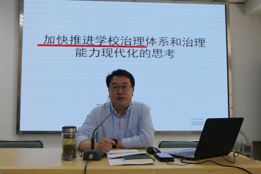 学校姚峰校长作了题为《加快推进学校治理体系和治理能力现代化的思考》专题报告。姚校长首先谈了党的十九届四中全会通过的《中共中央关于坚持和完善中国特色社会主义制度推进国家治理体系和治理能力现代化若干重大问题的决定》,是在传承与创新的结合中提升制度自觉、在世界与中国的结合中创造制度优势、在坚持与完善的结合中提升治理效能。高职院校治理能力建设是深化职业教育领域综合改革,加快推进职业教育治理体系、治理能力现代化的重要部分。接着,姚校长从前提、重点、基础和关键四个方面,详细阐述了推进学校治理体系和治理能力现代化的路径,为加快建设现代化学校厘清思路、指明方向。