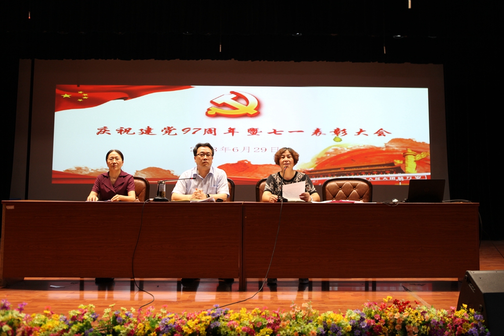 6月29日下午,我校庆祝建党97周年暨“七一”表彰大会在莫愁路校区报告厅隆重举行。会议热烈庆祝中国共产党成立97周年,并对校优秀党员、党员示范岗、党员示范课、党员示范班获得者进行了表彰。学校全体校领导和教职工党员参加了大会。会议由纪委仇国宏书记主持。