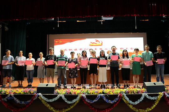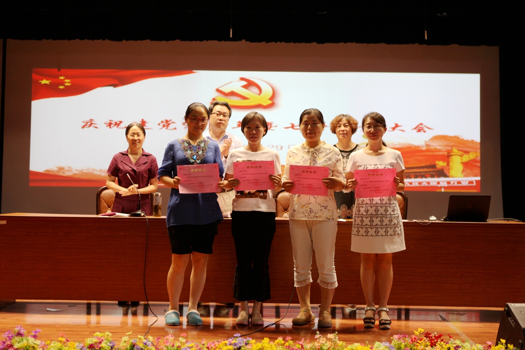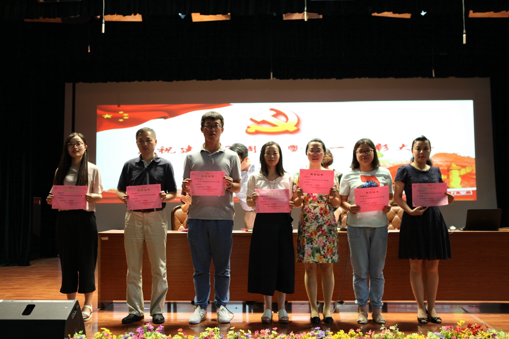 大会在庄严的国歌声中拉开了帷幕。随后,校党委许洁副书记宣读了“七一”表彰决定。杨宇净等28位同志被评为“校级优秀党员”,陈浩等12位同志的岗位被评为“党员示范岗”,孙蓬飞等7位同志所教授课程被评为“党员示范课”,米晓兰等4位同志所教班级被评为“党员示范班”。校党委姚峰书记和纪委仇书记为获奖个人颁奖。