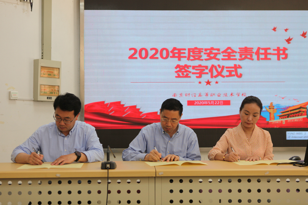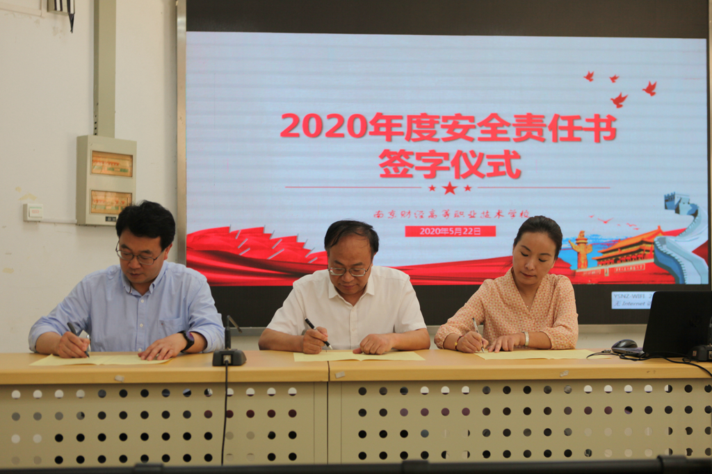 为全面贯彻落实党的十九大、十九届四中全会以及中央、省、市党委政府关于加强安全生产工作的一系列重要指示精神,根据《中华人民共和国安全生产法》、《南京市安全生产条例》、《南京市安全生产“党政同责、一岗双责”暂行规定》和《学校“党政同责、一岗双责”实施办法》,5月22日,我校在莫愁路校区召开学校综合治理、平安校园建设工作会议暨责任书签字仪式。学校全体中层以上干部参加会议,会议由姚峰校长主持。