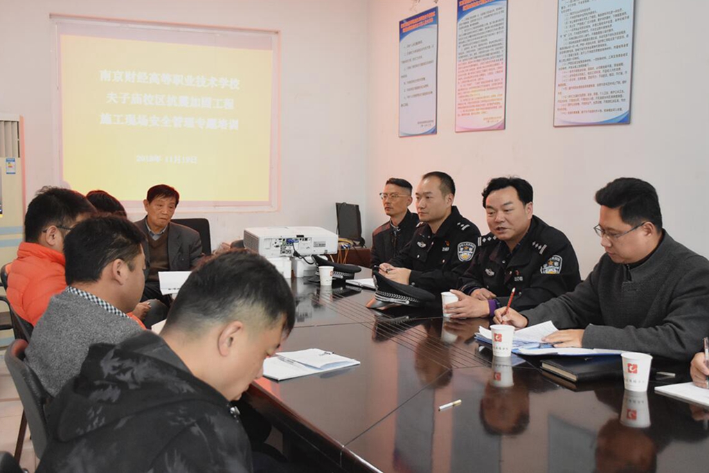 11月19日下午,我校邀请了秦淮公安分局内保大队刘正洪大队长和夫子庙派出所汤晨副所长到夫子庙校区施工现场进行安全专题培训。学校抗震加固项目组全体人员、项目工程监理全体人员、施工单位人员参加了此次安全专题培训,培训由高磊副校长主持。