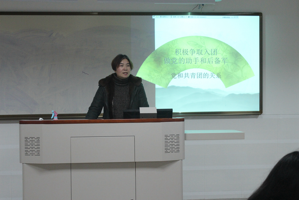 下午4时许,校纪委仇国宏书记以“党和共青团的关系”为题,向学员们阐述了党和共青团之间的紧密关系。仇书记首先详细阐述了党对共青团的领导以及共青团作为党的助手和后备军之间的紧密关系,接着以党和国家领导人以及毕业优秀校友的实例来鼓励大家争先创优。最后,仇书记希望广大学员在政治、学业、职业和生活上克服自身缺点,严于律己,争取早日加入中国共青团。