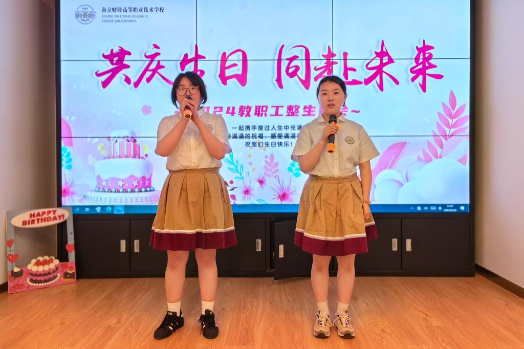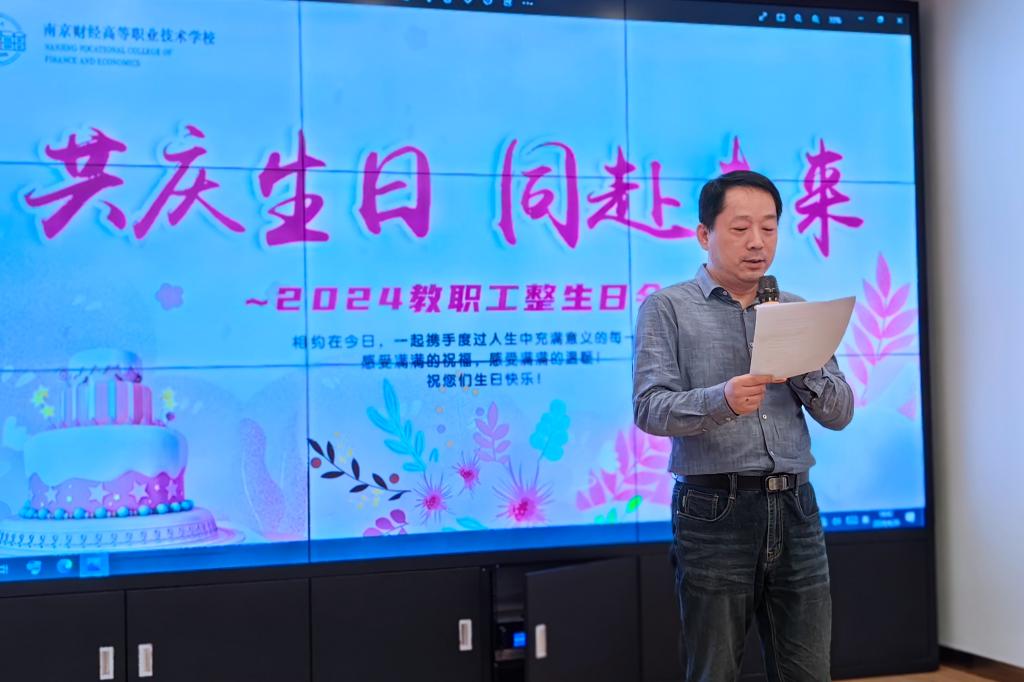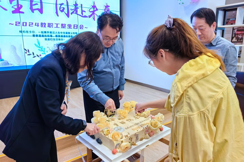 五一国际劳动节前夕,在学校党委和校领导班子的关心下,我校顺利举办教职工集体生日会。活动由学校工会副主席陈阳主持,校长姚峰,工会主席、副校长孙荣宝,副校长杨宇净,副校长薛飞等出席。活动在莫愁路校区工会之家举行,近二十位整生日的老师参加了生日会。