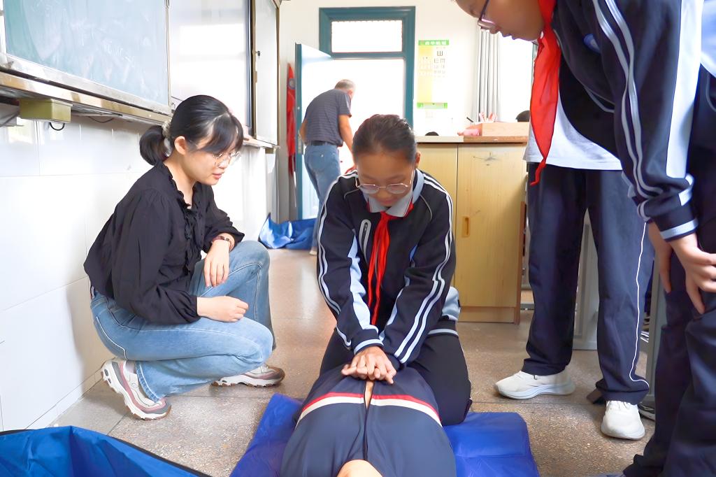 在云鹤初级中学,胡波校长对退教协的到来表示了热烈欢迎。他介绍,自2005年以来,我校退教协已连续20年为学校提供物资援助,这对促进学生健康成长,追求梦想有着不可估量的影响。在助学活动中,来自金融系与现代服务系的金敏、孙航两位老师为学生们开设了《认知风险》和《海姆立克急救法》等实用课程,进一步丰富了学生的课外知识。