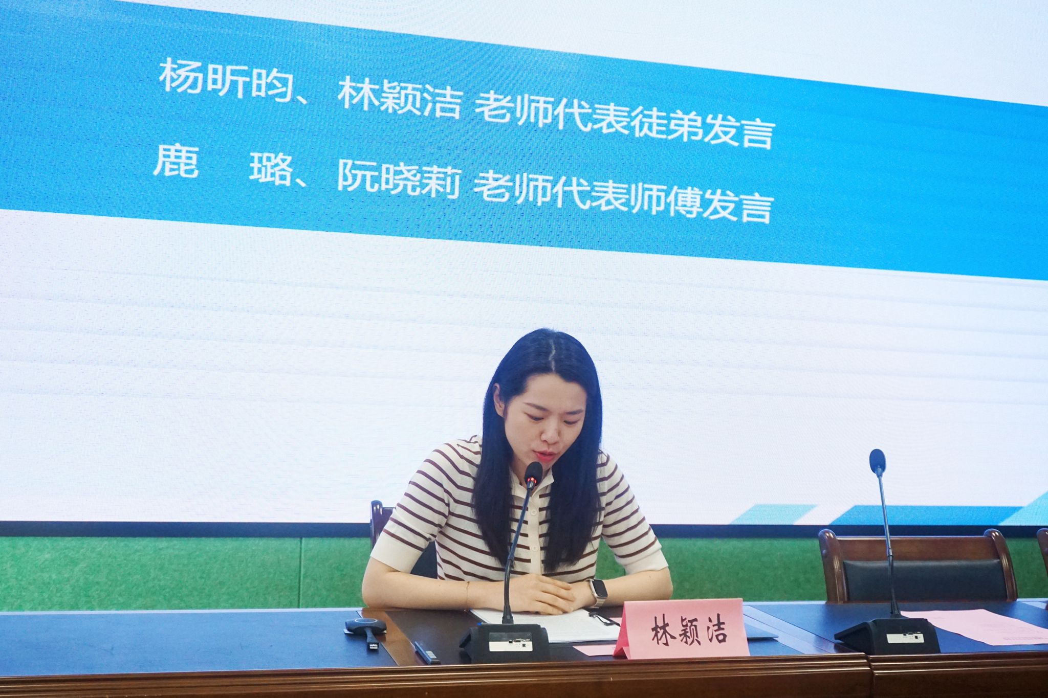 会上,徒弟代表杨昕昀、林颖洁进行发言。两位老师结合自身的经历,分享了走入职场以来的收获和成长,对师傅们的用心教导、倾囊相授致以诚挚感谢。