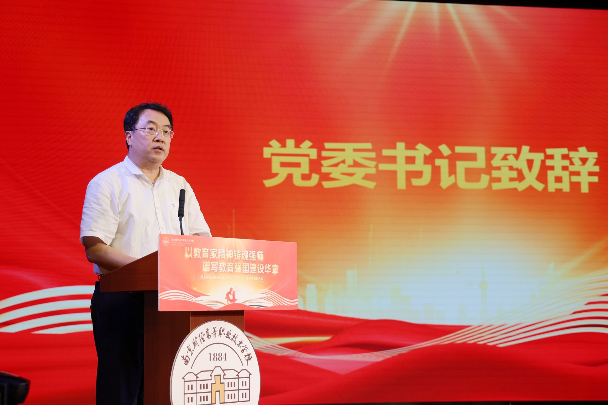 大会在庄严的国歌声中拉开帷幕。党委书记、校长姚峰发表致辞,他首先代表学校领导班子向全体教师致以最诚挚的节日祝福。接着,他回顾了过去一年学校在高质量发展过程中取得的显著成绩,肯定了每位教职工的担当作为和辛勤付出。最后,他希望全体教职工能做“匠心筑梦”的传承者,做“产教融合”的践行者,做“学生成长”的守护者,在各自的岗位上恪尽职守、锐意进取,共同推动学校事业再上新台阶!