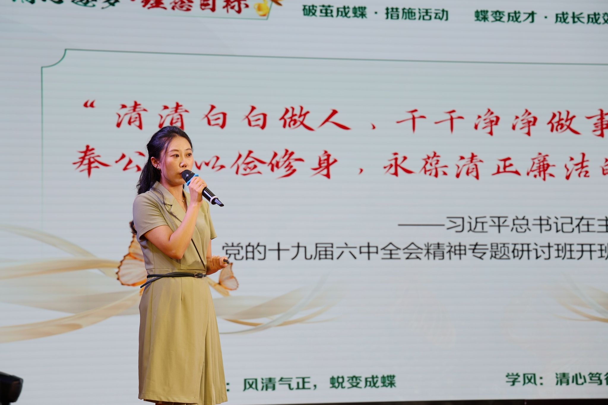 表彰环节后,三位教师代表进行了教育好故事分享。动漫制作技术专业教师蒋云娇以《匠心传承:一位动画教师的成长之路》为题,讲述了她在沙牧秋老师的关心和指导下,通过“以赛促教”的创新模式带领学生斩获国赛金牌,实现从新手教师到冠军导师蜕变的心路历程;婴幼儿托育服务与管理专业教师蒋羽琪通过《跳动的逐光之旅》,讲述了王巧雅老师以创意课堂与专业排练助力学生逐梦艺术,屡获佳绩的精彩故事;陈颖老师则以《20载,90后与90后的温暖接力》,讲述了学校“明德爱心慈善团队”用二十年诠释教育大爱,新老教师共同成长的教育情怀。