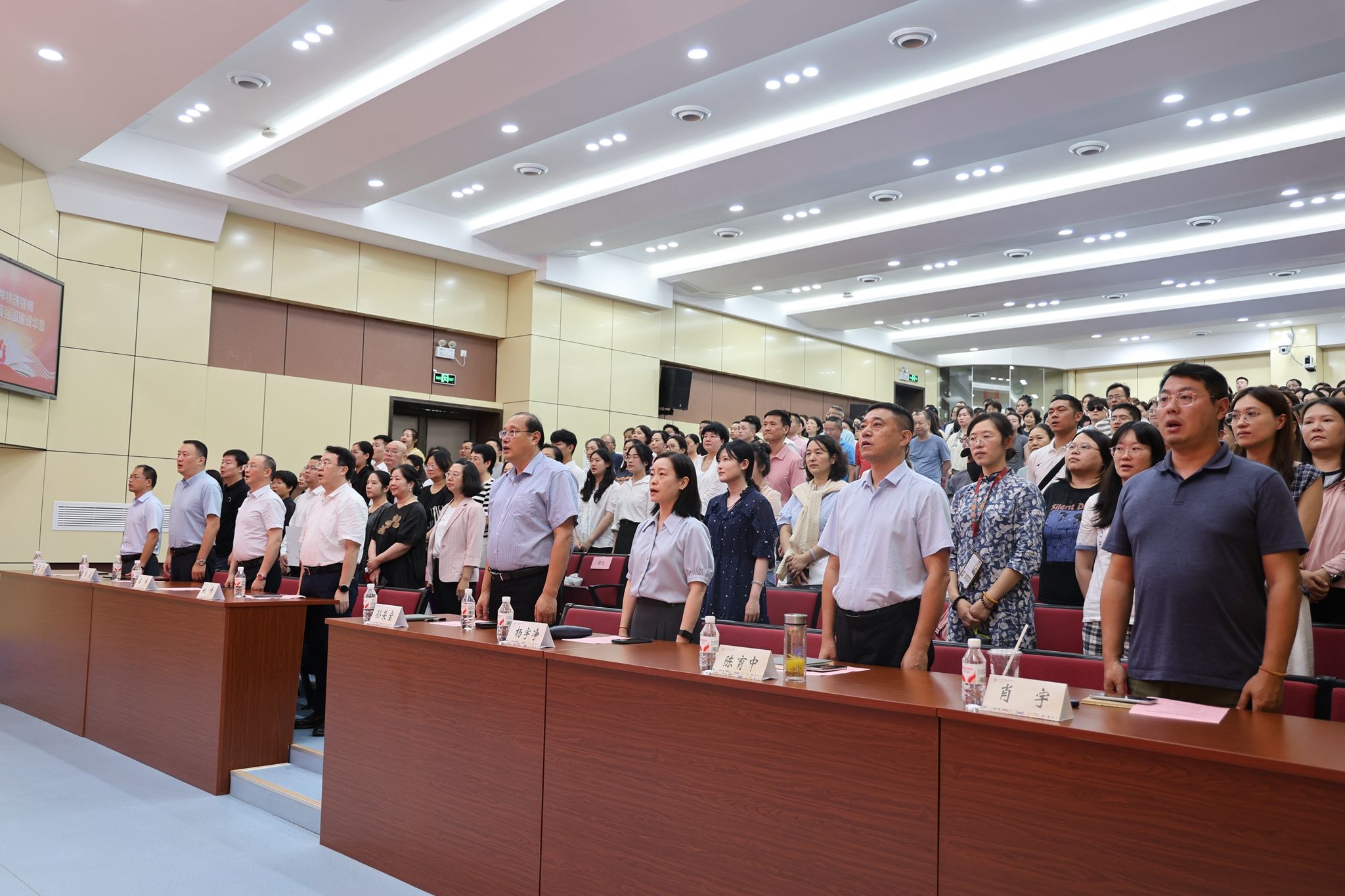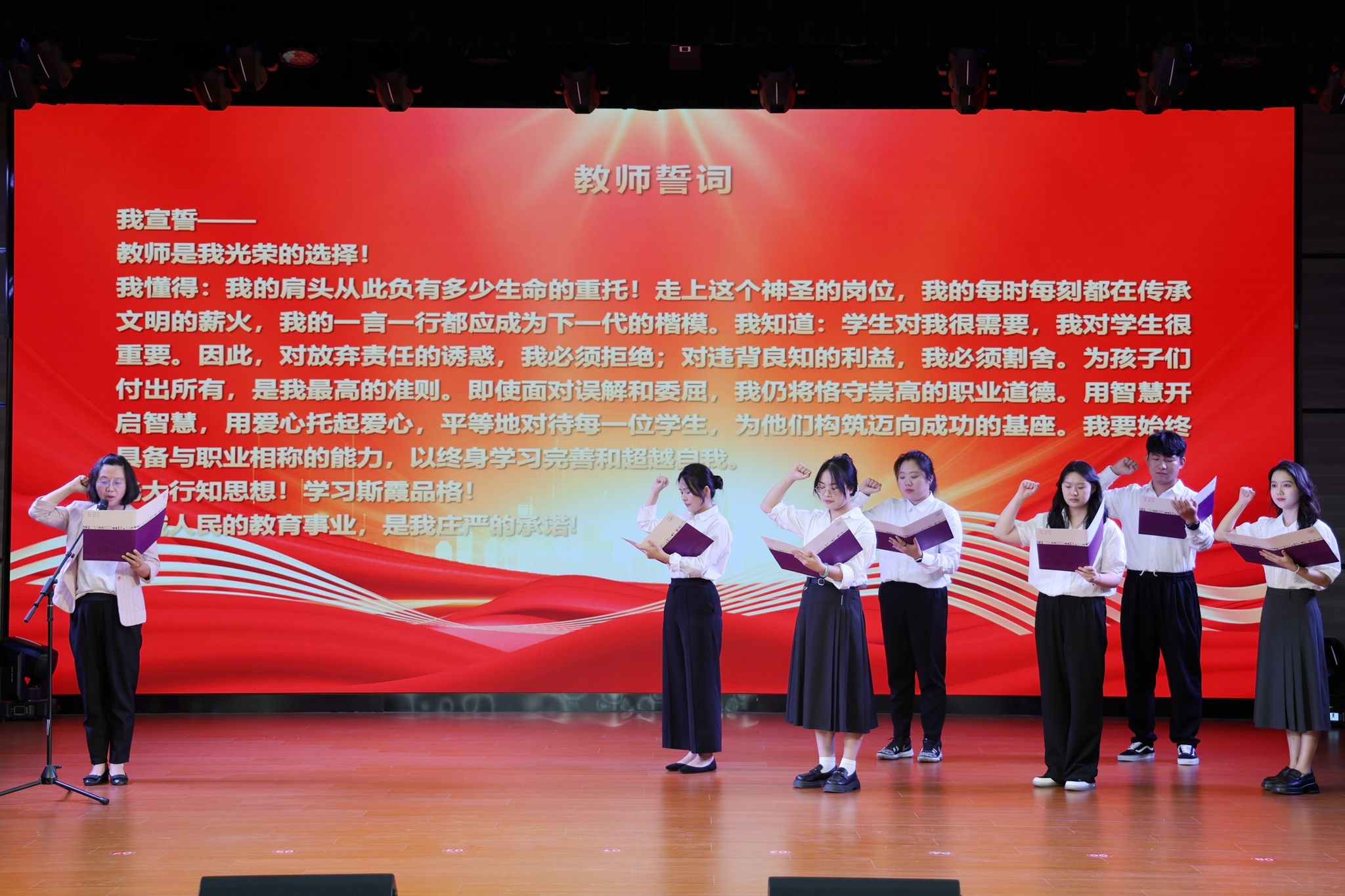 “我宣誓——教师是我光荣的选择……”全体教师肃立,在教学工作部主任马原的带领下重温教师誓词。铿锵有力的誓言回荡在报告厅内,彰显着教育工作者对教育使命的坚守与承诺。