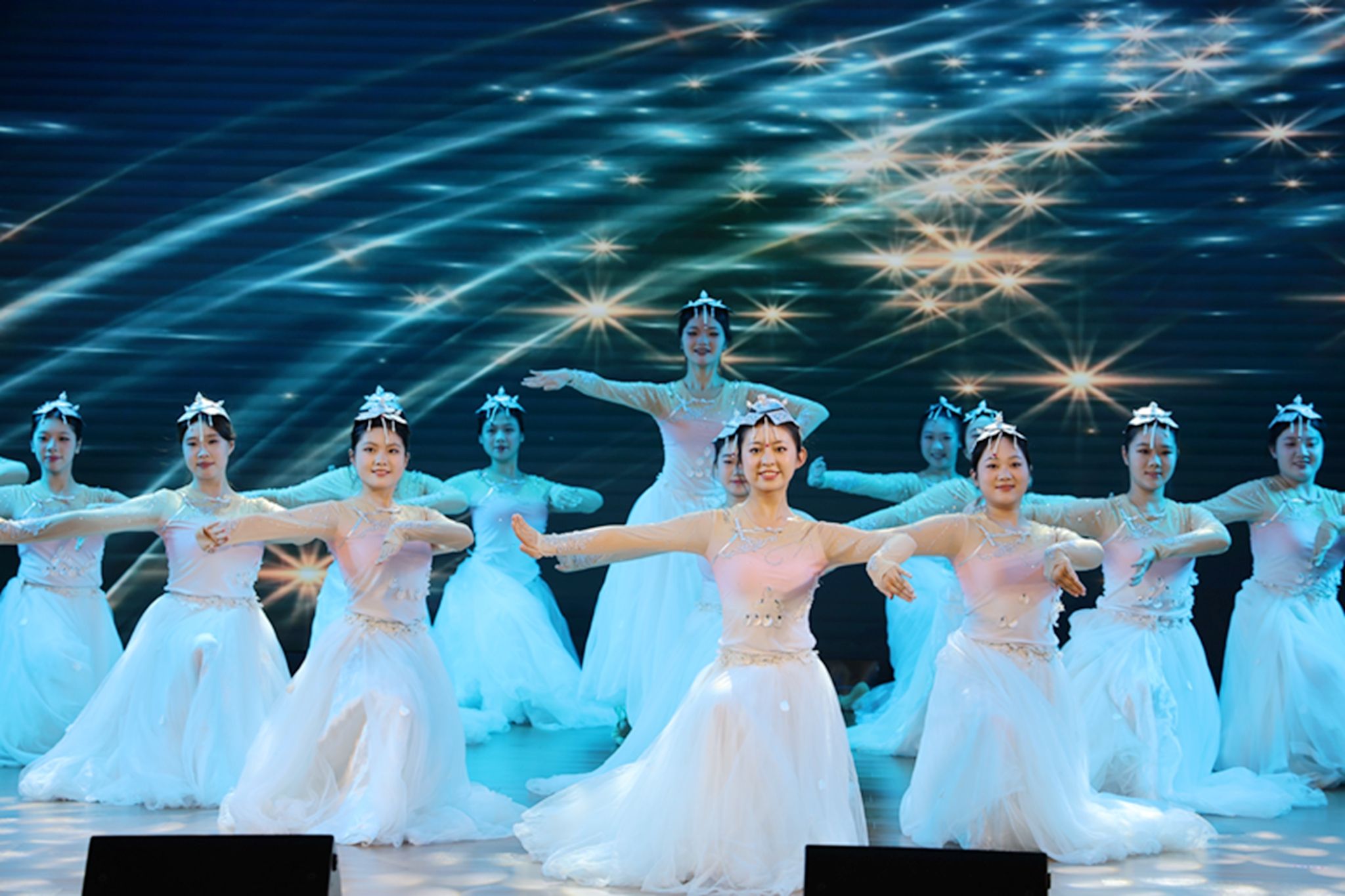 大会尾声,现代服务系学生献上歌舞《额尔古纳河》,以悠扬的旋律与翩跹的舞姿,向教师们献上最真挚的祝福。