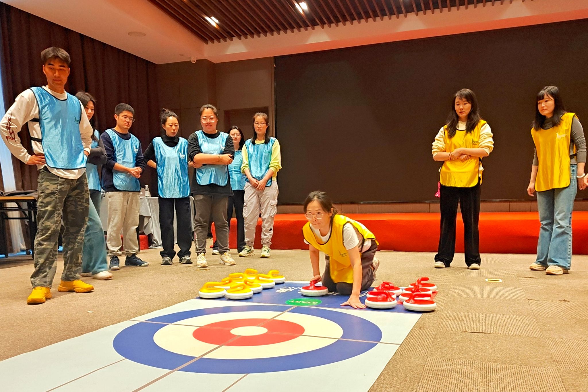 次日,素质拓展活动在轻松而富有挑战的氛围中拉开帷幕。活动设置了“破冰起航”“匠心筑梦共绘蓝图”“聚力前行旱地冰壶”等一系列兼具趣味性与协作性的项目。在专业教练的指导下,老师们迅速组建团队,共同制定策略、分工协作、密切配合,在一个个任务中突破自我、凝聚集体力量。整场活动中,欢声笑语与加油呐喊声此起彼伏,老师们在实践中深刻体会到了团队协作、责任担当与沟通包容的重要性。