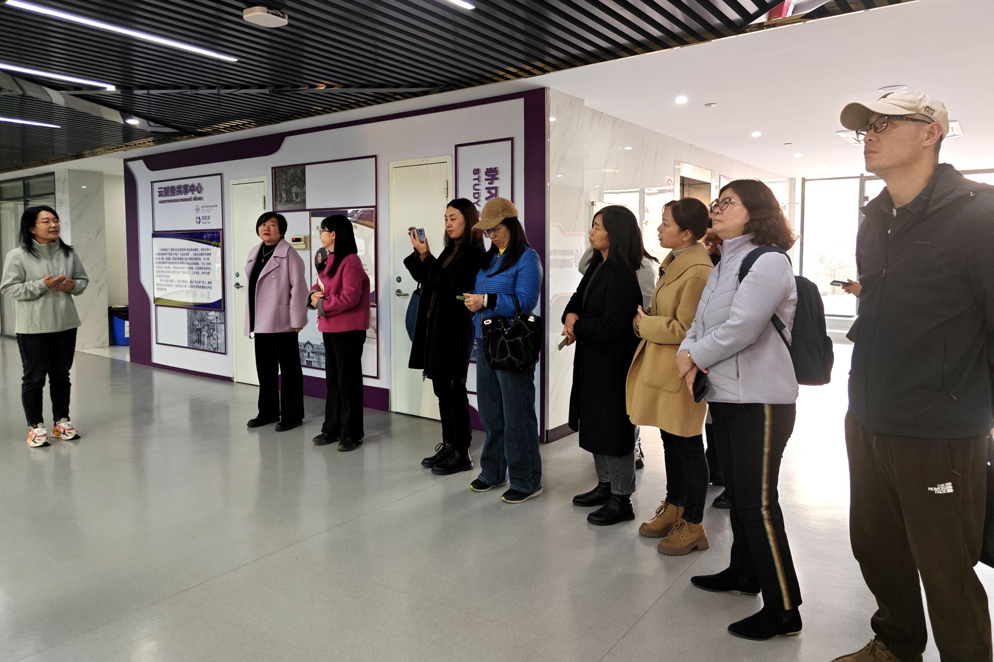 上海教指委调研团在校方陪同下参观了学校校史展馆及云财务共享中心。随后双方举行了座谈,上海市多所中职学校的教学负责人、专业带头人与企业代表参与交流。姚峰致欢迎辞,并围绕学校的发展历史、办学特色、师资培养等方面进行了全面介绍,上海商业会计学校校长杨菁介绍了本次调研的背景与目的。