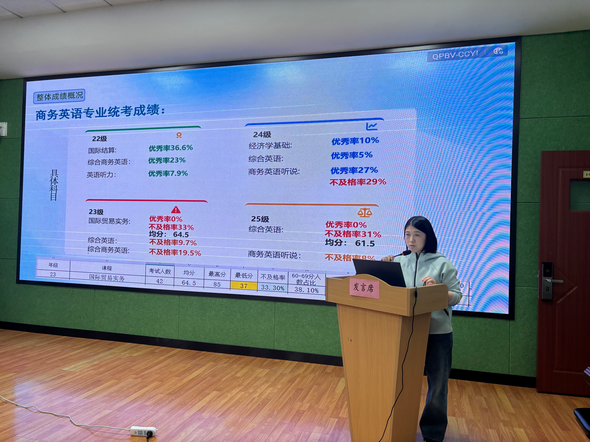 在本次会议中,教学工作部副主任夏书苑、会计系副主任李金黛、信息艺术系副主任史明岑、金融系副主任戴颖、现代服务系副主任何莲莲依次围绕本系(部)期中学情展开详细汇报。各位主任通过翔实的数据对比,全面展现了教学整体情况,分析了学生的群体特点与个体差异,梳理出教学工作中的共性问题和个性短板。同时结合专业特色,提出针对性改进思路,为后续提升教学质量指明了方向。