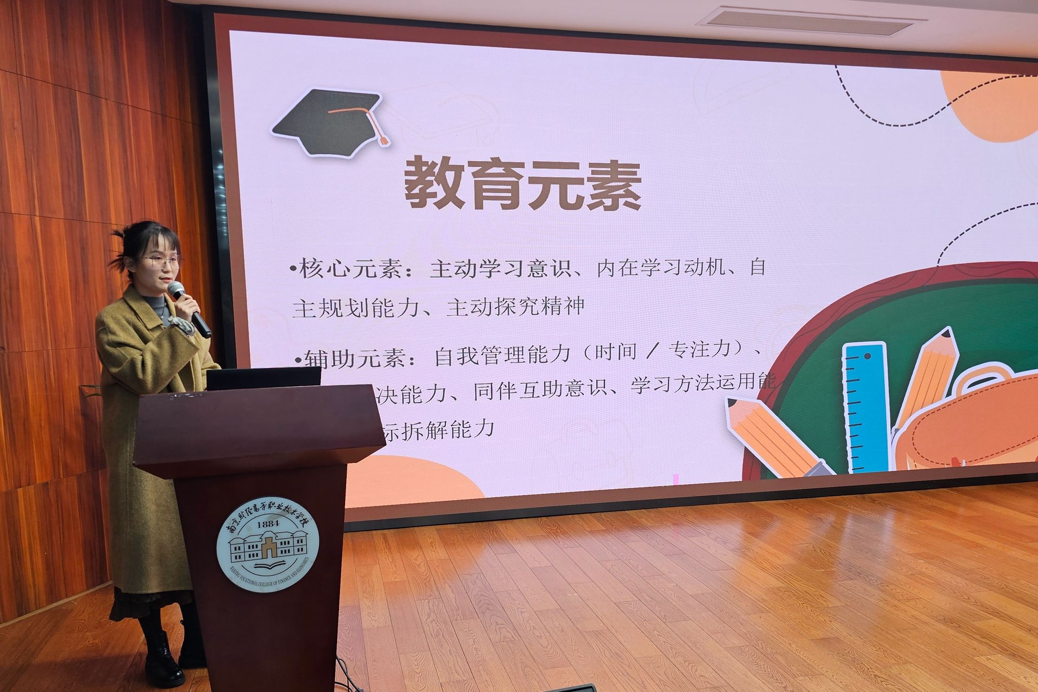 在班级活动策划环节,参赛选手们围绕抽定主题,紧扣时代主题与专业特色,深度挖掘教育元素,结合班级实际情况精心设计,从教育元素、目标、内容出发,阐述了形式多样的活动构想,通过形象生动的PPT展示与脱稿讲解,呈现了一个个主题鲜明、形式新颖、兼具创新性与可操作性的活动方案,彰显了班主任们扎实的教育设计功底。