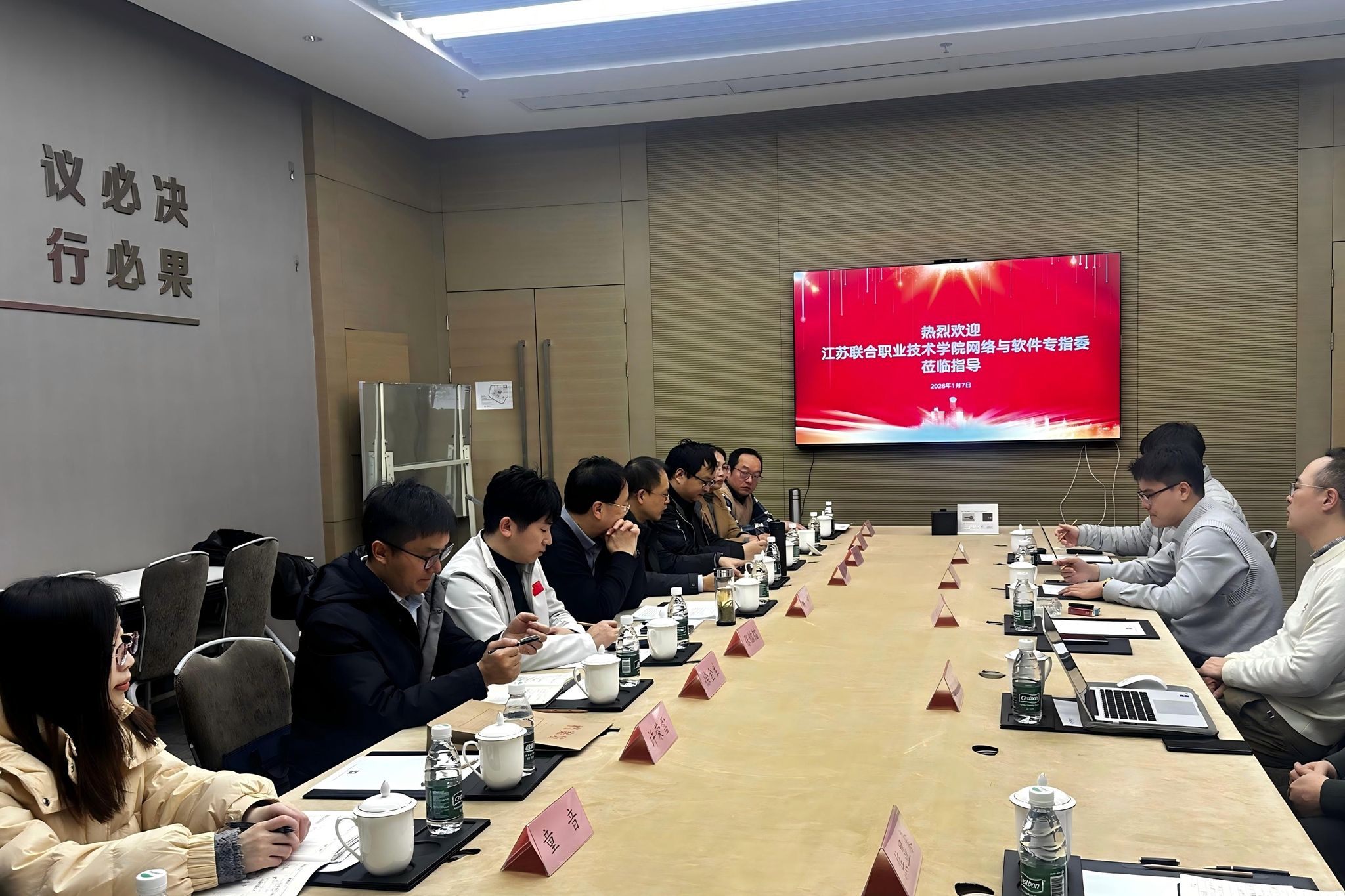 1月7日下午,网络与软件专业建设指导委员会(以下简称“网络与软件专指委”)主任委员、我校党委书记、校长姚峰,专指委秘书长、我校副校长薛飞及部分成员院校委员代表赴江苏润和软件股份有限公司(以下简称“润和软件”)开展调研交流。