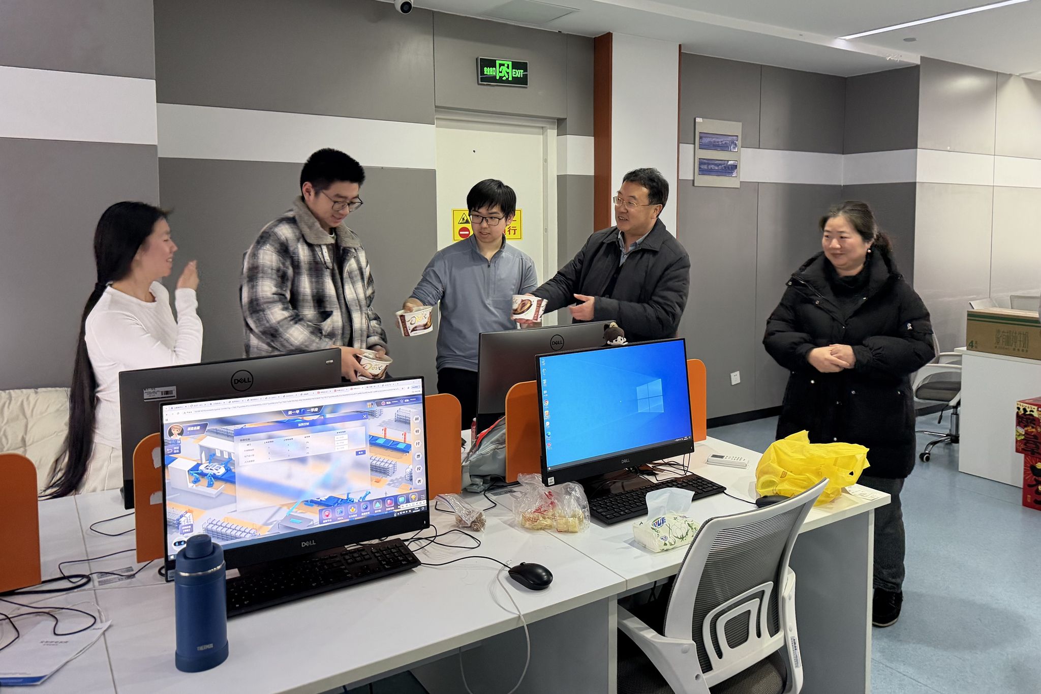 慰问中,田家英一行详细询问训练进展,肯定师生“舍小家、顾大赛”的奉献精神,勉励队员“精益求精,勇创佳绩”,强调技能大赛是检验职教成果的重要平台。章宏表示,学校要深化以赛促教、以赛促学,深化产教融合,培养高素质技术技能人才。随后,姚峰、薛飞又前往莫愁路校区,慰问其余备战队伍,向师生送去深切关怀与暖心问候。