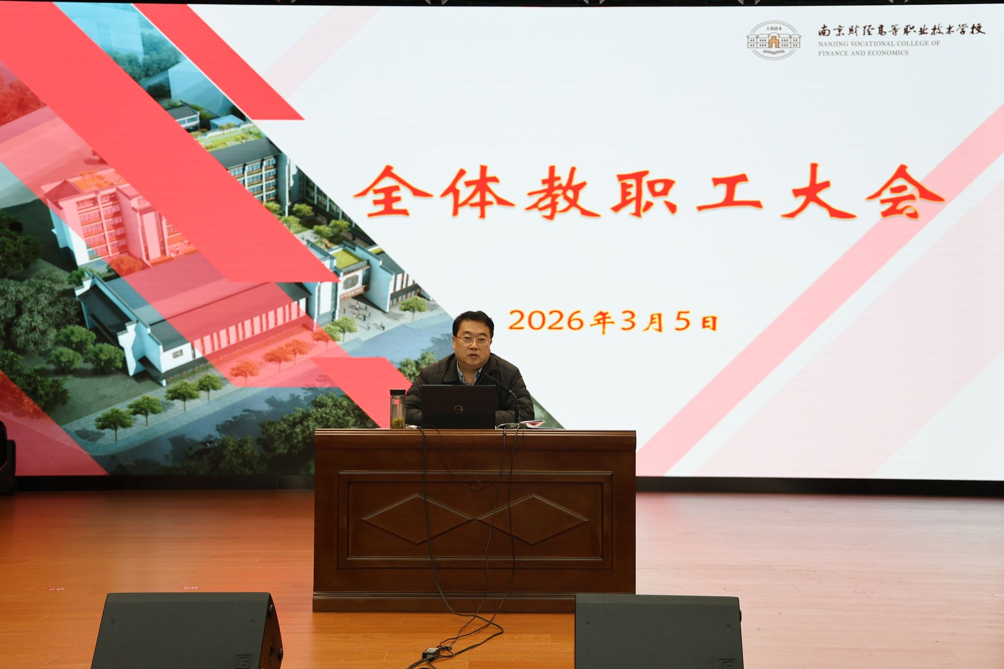3月5日,我校召开2025-2026学年春学期开学教职工大会,会议以“凝心聚力启新篇,笃行实干向未来”为主题,深入解读职业教育“十五五”发展规划等文件内容,传达全国、全省2026年教育工作会议精神,系统部署学校新学期重点工作及假期、开学相关事宜,为学校“十五五”发展高标准起步、高质量开局统一思想、明确方向。会议由学校党委书记、校长姚峰主持。