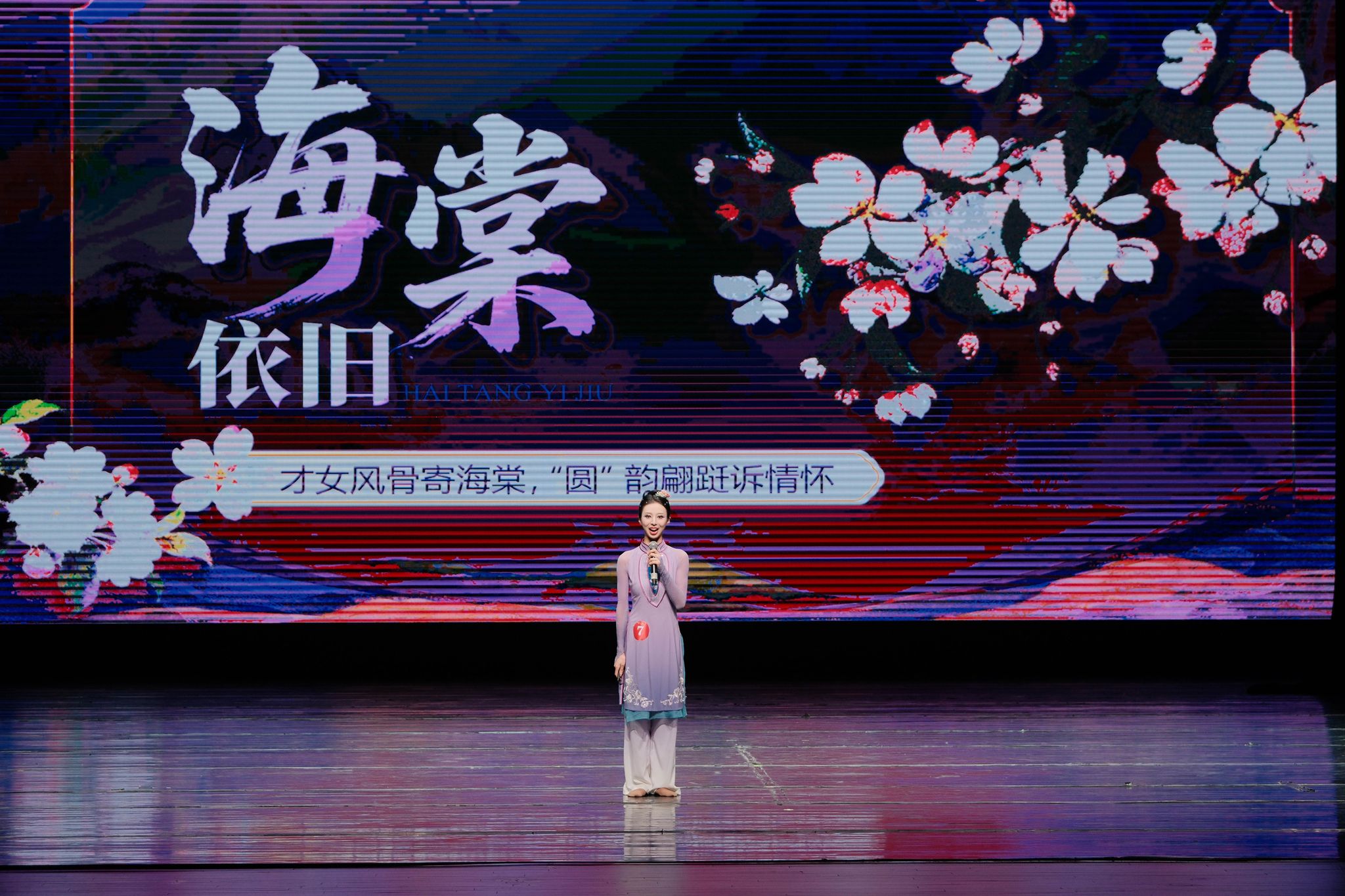 展示讲解环节是综合能力的终极考验。蒋羽琪以中国古典舞《海棠依旧——才女风骨寄海棠,“圆”韵蹁跹诉情怀》为题,从“艺术价值解读—技教融合实践—项目落地展望”三个维度深入剖析作品,语言表达精准流畅,台风稳健大气,将专业技能与艺术理念完美融合。