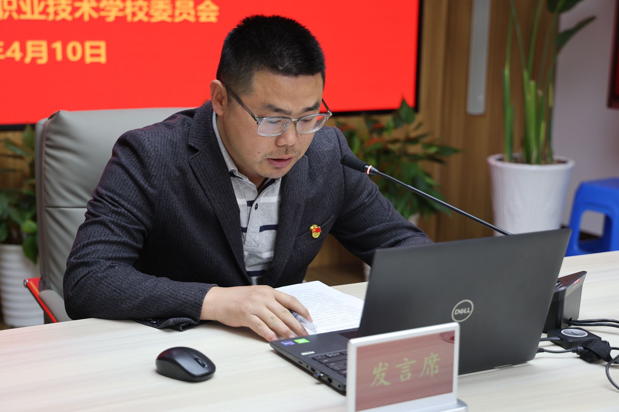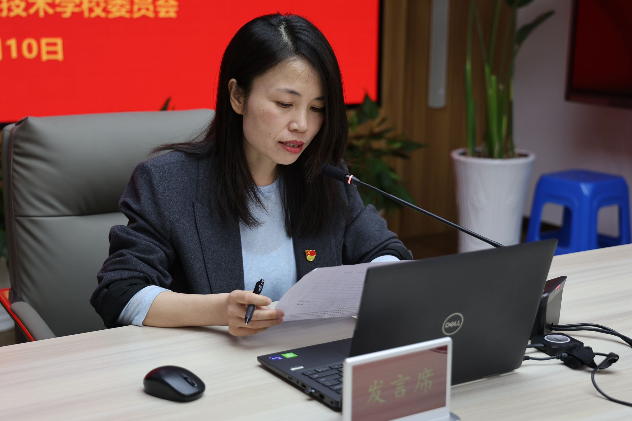 副校长薛飞作主讲发言。发言中他表示,要深学笃行习近平总书记重要讲话精神,以正确政绩观推动学校教学工作提质增效。他认为,正确政绩观是践行“两个维护”的政治检验,是坚守为民初心的价值追求,是推动高质量发展的行动指南,也是担当作为干事创业的动力源泉。发言提出,要以务实举措推动教学工作提质增效,包括锚定立德树人任务,聚焦内涵建设提质增效,深化产教融合校企合作,建强师资队伍夯基固本,严守纪律规矩底线,牢固树立和践行正确政绩观,为服务江苏“走在前、做示范”、完成“十五五”目标任务贡献职教力量。
