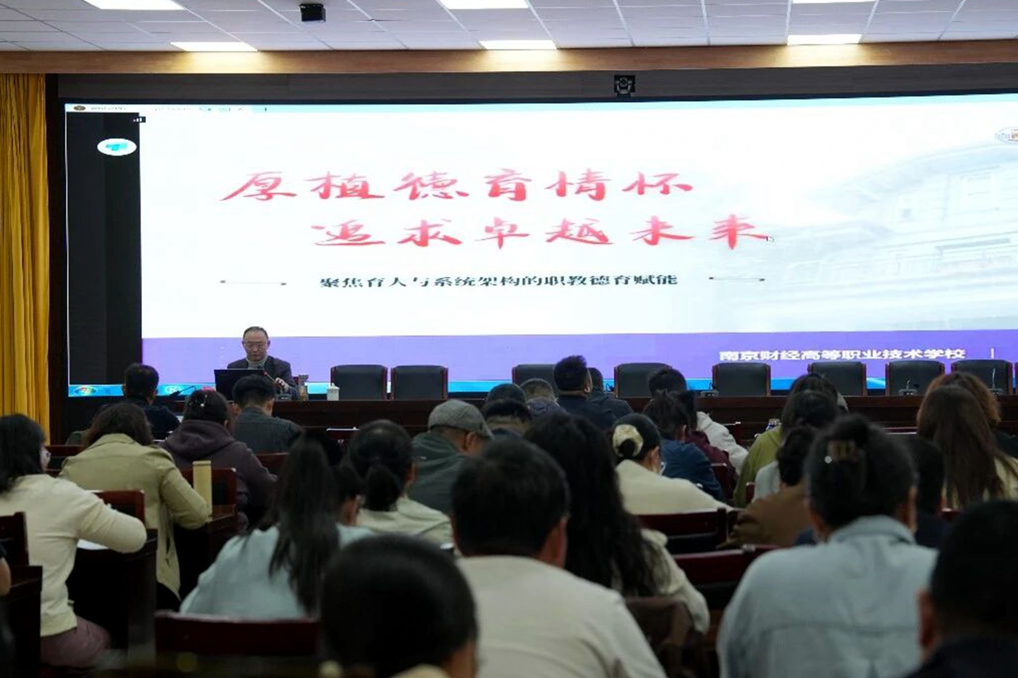姜峰以《厚植德育情怀 追求卓越未来》为题开展讲座,拉开交流活动序幕。他结合学校德育工作部署与自身实践经验,围绕三大核心议题,用鲜活案例和翔实数据剖析职教德育重难点,分享我校育人实践成果,给出可操作建议,为兄弟学校德育工作提供新思路,获得现场一致认可。