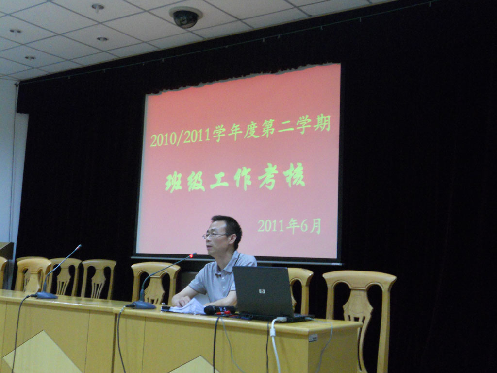 6月30日上午,我校2010/2011学年度第二学期班级工作交流与考核工作分别在两个校区的报告厅举行。学生科许鸣峰科长和教管科黄荣桂科长分别参加了两个校区的班级工作交流会议,听取了各班干部的汇报。