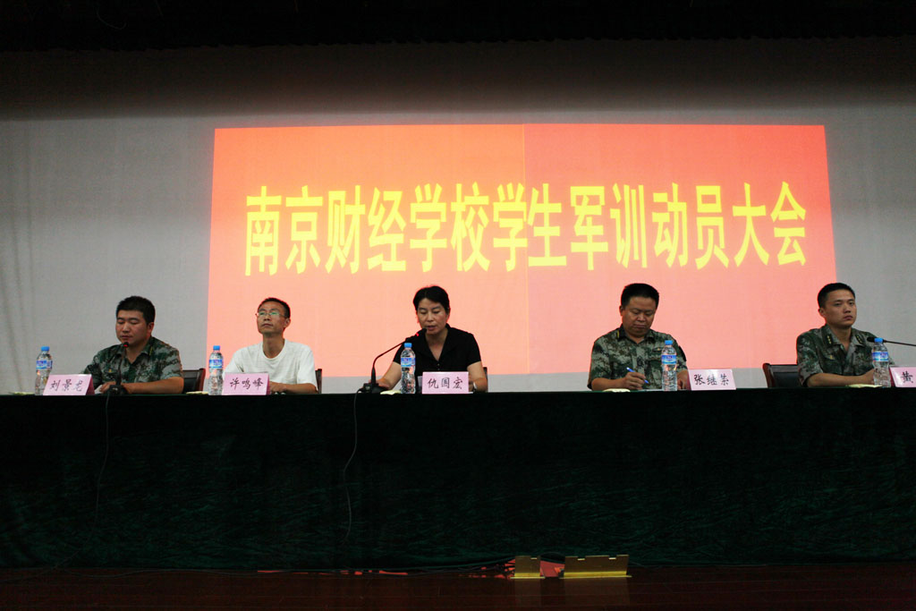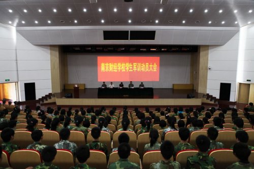 上午十点半,2011级学生军训动员大会在南京市国防教育训练基地隆重举行。学校党委仇国宏副书记、学生科许鸣峰科长,军训基地办公室张继荣主任、刘景龙副主任及学校参加军训工作的老师们都出席了仪式。仪式在庄严的国歌声中拉开帷幕。首先,由军训基地军事科黄浩科长向我校2011级新生作了开训动员。他从军训的目的、军训的内容等几个方面进行了动员,并提出了“充分认识军训目的”、“发扬不怕苦、不怕累的精神”、“严格遵守军训的制度”等三点要求。紧接着,学生代表和教官代表分别做了简短的发言,并表了决心。随后,我校仇副书记指出,军训是大中专学生的一门生动的必修课,是同学们成长道路上的一个新的起点和加油站,烈日的烘烤和大负荷的训练,能磨练同学们顽强的意志,学习军队严明的组织纪律性和集体主义精神。仇副书记还就今年的军训提出了两点希望:希望军训基地的首长和教官们严格要求我校学生;希望我校同学们不辜负期望,以饱满的热情投入训练,听从指挥、服从纪律、战胜困难、挑战自我,争当“优秀学员”。
