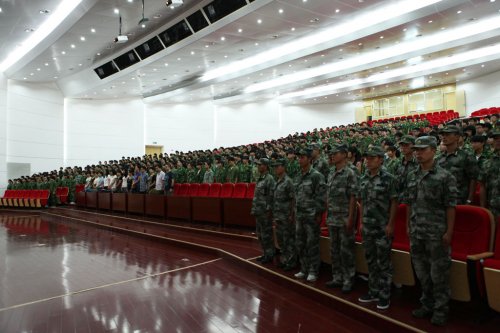 军训动员大会在嘹亮的军歌声中结束。我们相信六天的军训一定会取得圆满成功!