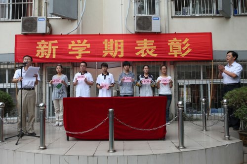 9月13日晨会,我校夫子庙校区隆重举行了新学期表彰大会,大会由学生科许鸣峰科长主持。许科长首先宣读了《表彰决定》:在2010/2011学年度第二学期,学校有张金鑫、陈妍等18名同学被评为“三好标兵”,周学茜等25名同学获得一等奖学金,陈妍等20名同学获得二等奖学金,成若云等53名同学获得三等奖学金,刘星雨等388名同学被评为“三好学生”,芦依培等96名同学被评为“优秀学生干部”。施卓人书记为获得表彰的个人颁发了荣誉证书,为获得奖学金的同学颁发了奖金。接着,许科长和施书记又对学校2011级新生高职和中专入学成绩前三名的同学分别进行了表彰并颁发了奖金。最后,许科长肯定了受到表彰同学在过去的学习中勤奋刻苦、努力争先的品质,并号召全校同学要学习他们刻苦学习、奋发向上的精神,以取得更加优异的成绩。