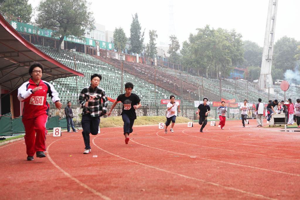 本次运动会的参赛选手超过1500名,按年龄和性别分成男甲、男乙、女甲、女乙四个组别,比赛既有传统的田赛、径赛项目,又增设了踢毽、保龄球、呼拉圈、拉绳角力等趣味项目,大大提高了学生的参与度。运动场上,在澎湃的激情、震天的呐喊中,运动员们奋力争先,拉拉队员用自己的热情为选手们加油。12号下午天下起了小雨,运动员们在雨中坚持完成了100米和800米的决赛,随着雨势的增大,比赛被迫中断,但同学们的斗志没有被浇灭,经过了半天的休整,第二天一早同学们以更加饱满的精神状态出现在赛场上。历时一天半的赛程,同学们用自己的汗水换来了可喜的成绩。