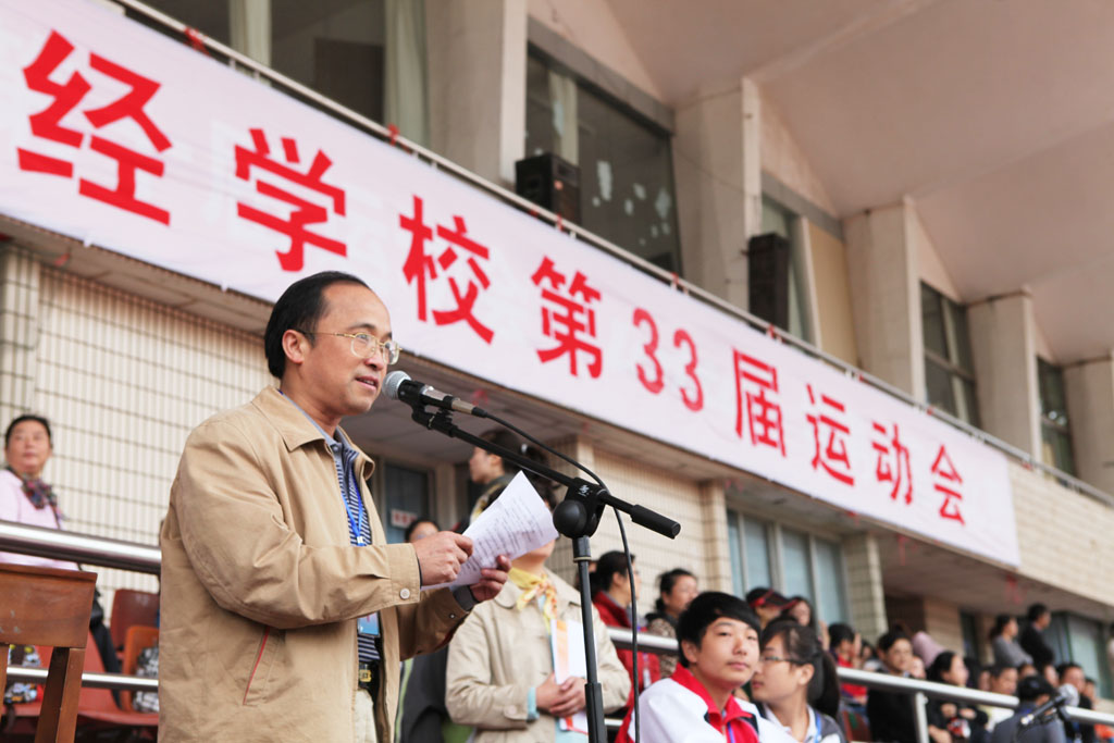 10月12日、13日两天我校在五台山体育场顺利举行了第33届学生田径运动会。邓中材校长致开幕词并宣布运动会开幕。