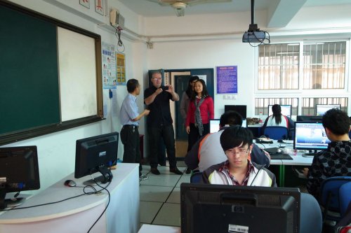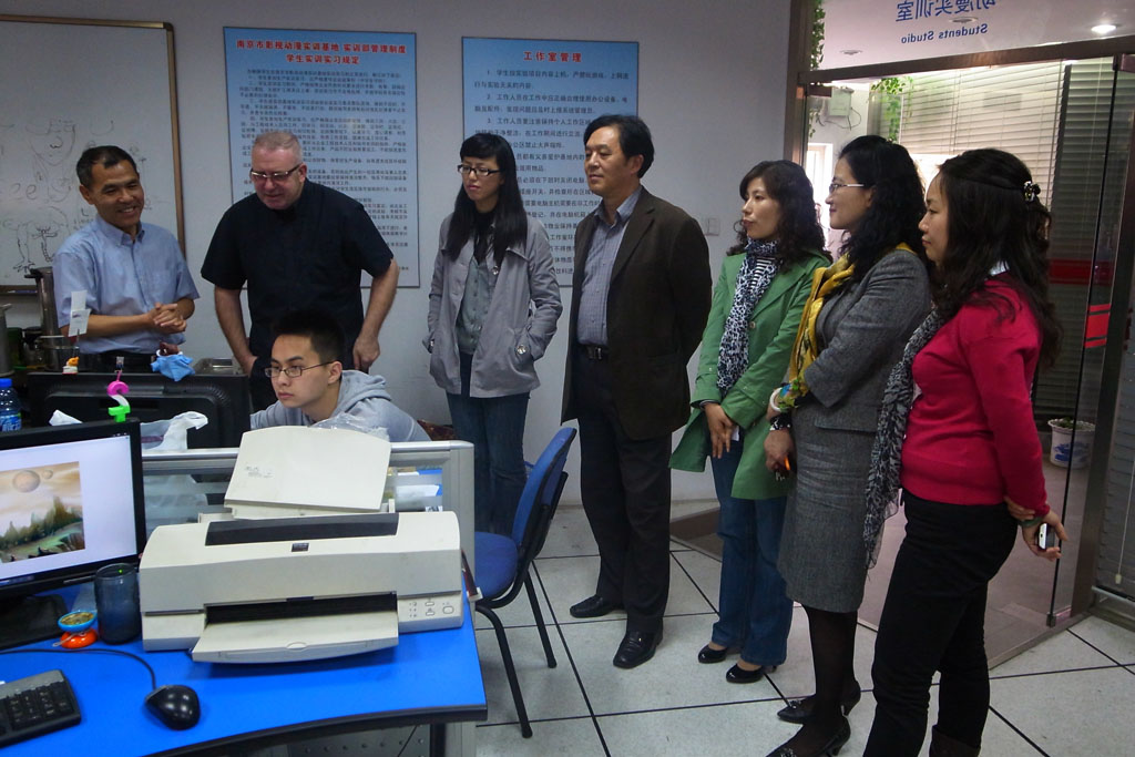 11月3日,英国伯恩茅斯艺术大学Mr.Anthony教授来到我校,与学校施卓人书记、吴蔚群副校长、影视动漫实训基地朱红忠主任、计算机专业办张翠红主任以及南京光荣梦想数码传媒有限公司姚晓明总经理开展了友好会晤。双方进一步落实了中英联合办学的细则和条款,就中英联合办学事宜进行了深层次的洽谈。Mr.Anthony教授在校领导的陪同下参观了我校新街口校区及影视动漫实训基地,并观摩了学校08、09级正在进行的企业实训项目。