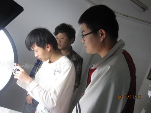 我校计算机训练队已经进入到市级比赛前的集训阶段,为了加强学生摄影技巧,我校于11月18日特聘请广告公司的专业摄影师,与训练队学生进行交流切磋。